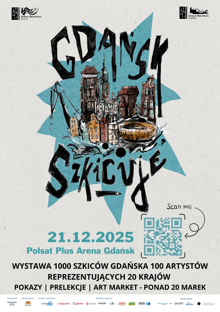 Over 1000 sketches of Gdańsk, created by more than 100 artists from 20 countries, were gathered at Polsat Plus Arena Gdańsk on December 21, 2025. For us, it was a unique opportunity to see the city through the eyes of artists from different cultures and to celebrate 13 years of Urban Sketchers Gdańsk.