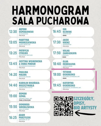 She talked about how to capture the character of a person, emotions, and movement dynamics in a quick sketch while maintaining her own artistic style. She also shared her experience working on the film “Chłopi”, showing how observing movement and crowds affects the dynamics of a drawing.