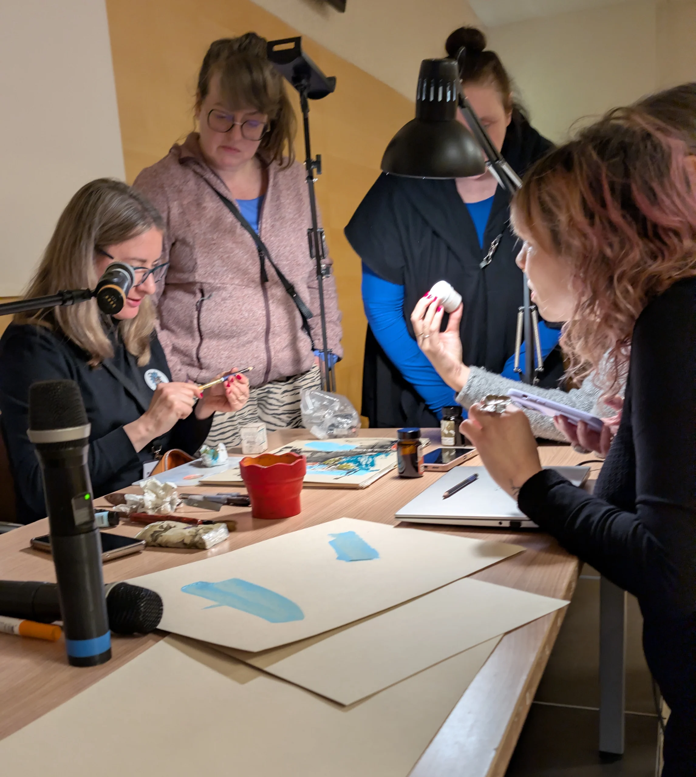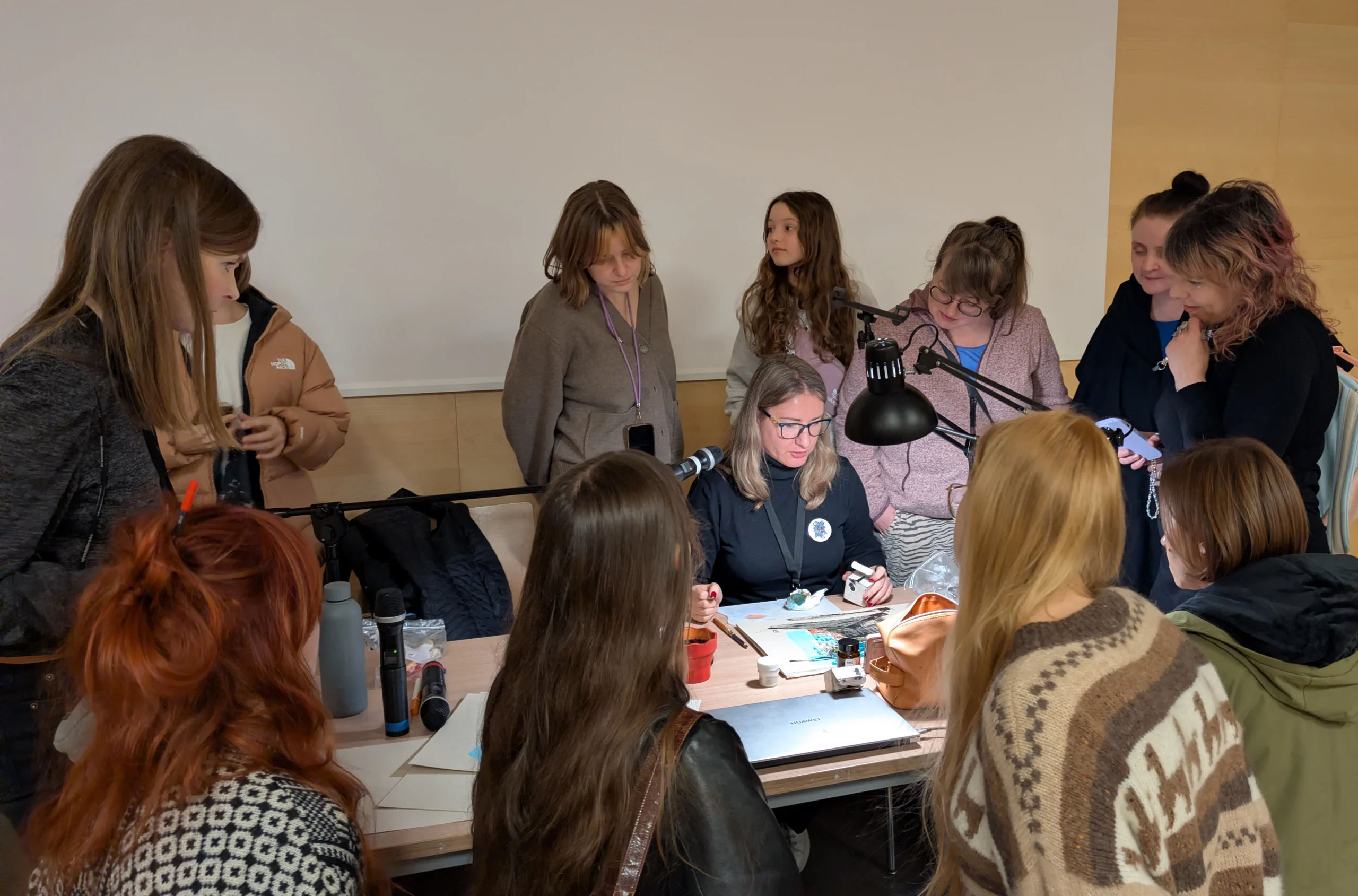During the event, Tetiana Ocheredko held a sketch demo, demonstrating how to use ink and brush to give sketches expression, movement, and emotion. She explained how to build light, shadow, and perspective, giving drawings depth and energy.