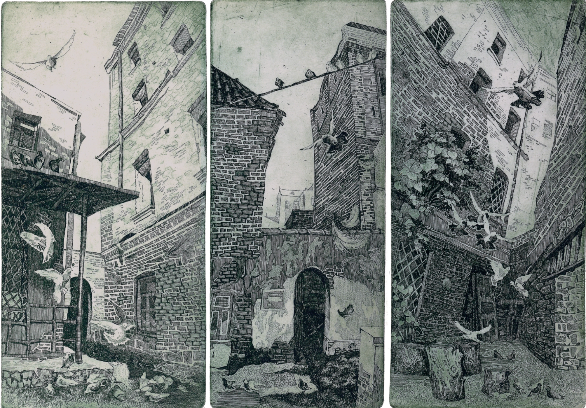 It is not enough to simply erase everything and turn it into a blank canvas. We remember. In this series, the artists visually convey the experiences, feelings, and emotions connected with the destruction of home and personal histories. All pain, fear, hope, and reflection are transmitted through lines and their pressure.