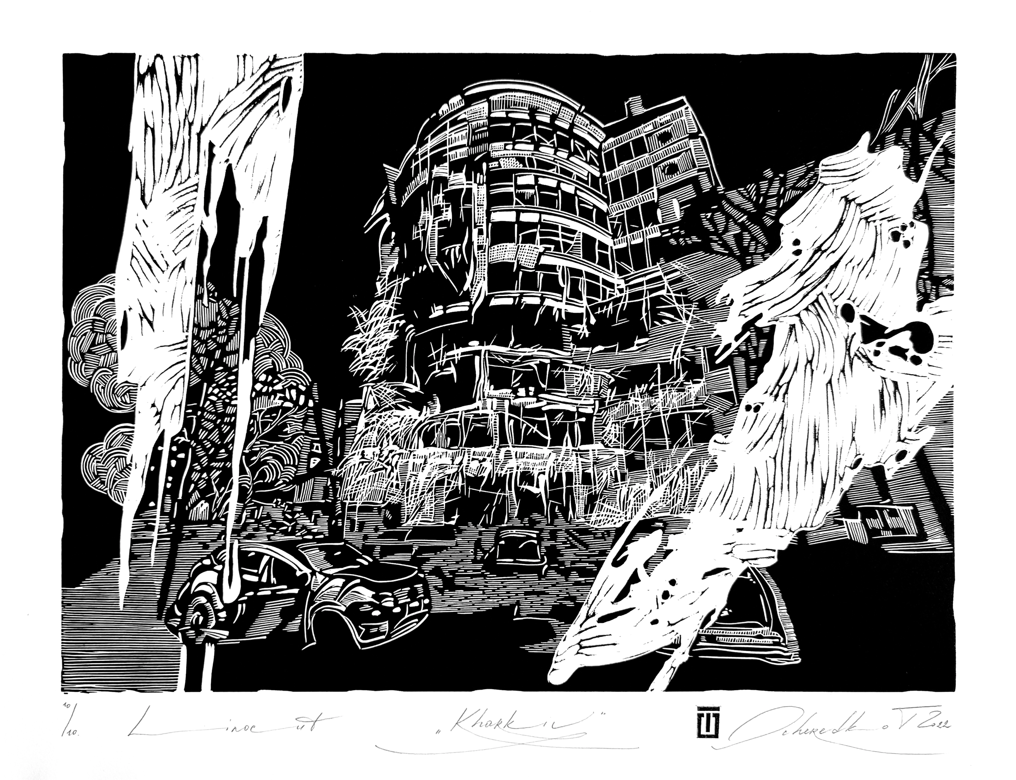 In October 2025, the Kyiv City Museum Collection was enriched with 18 graphic works by Kateryna and Tetiana Ocheredko. The works were created using black-and-white linocut, etching, and hand-drawn ink techniques, and are dedicated to the theme of the full-scale war.