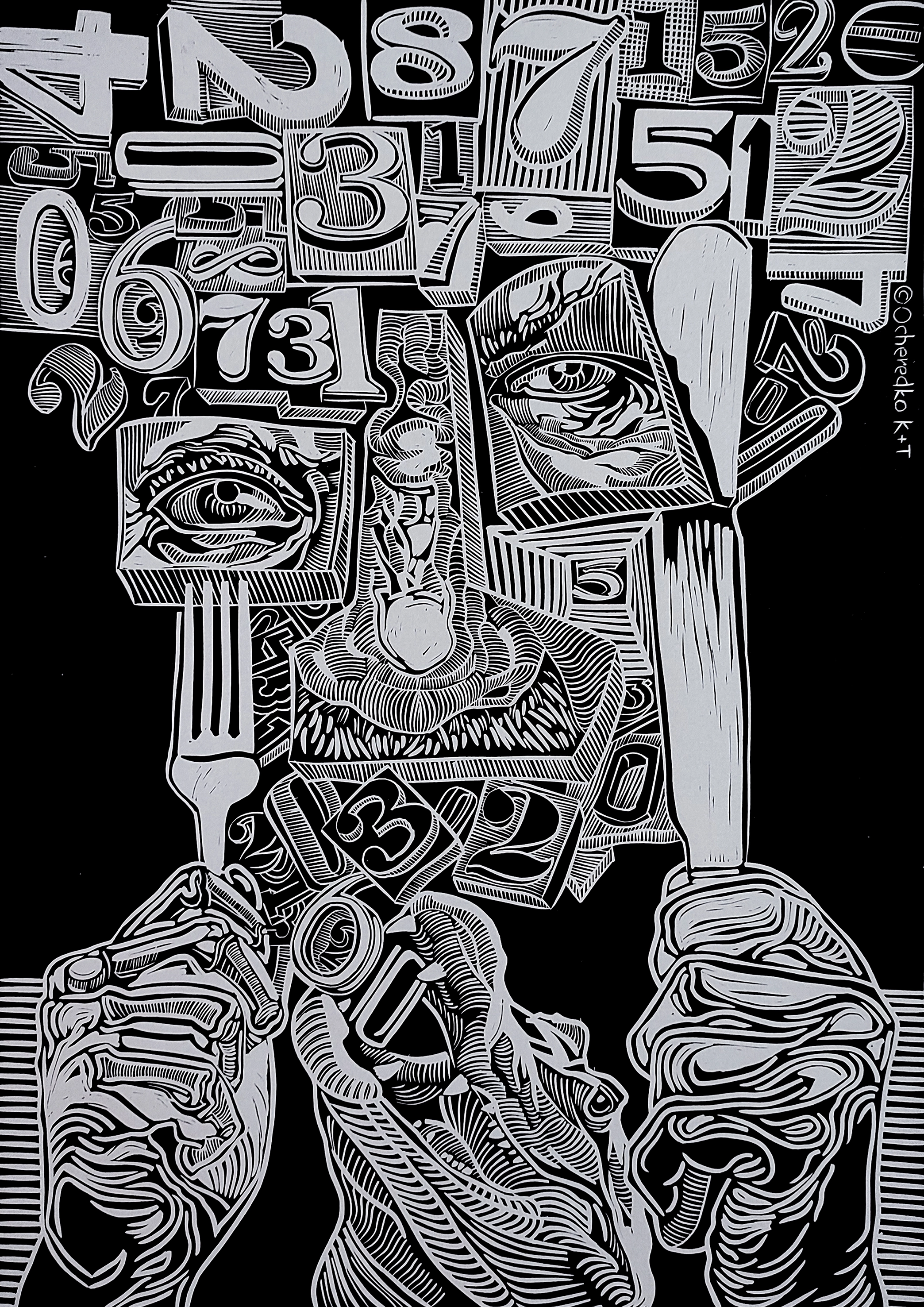 “Bucha”, linocut, 2022, Kateryna Ocheredko