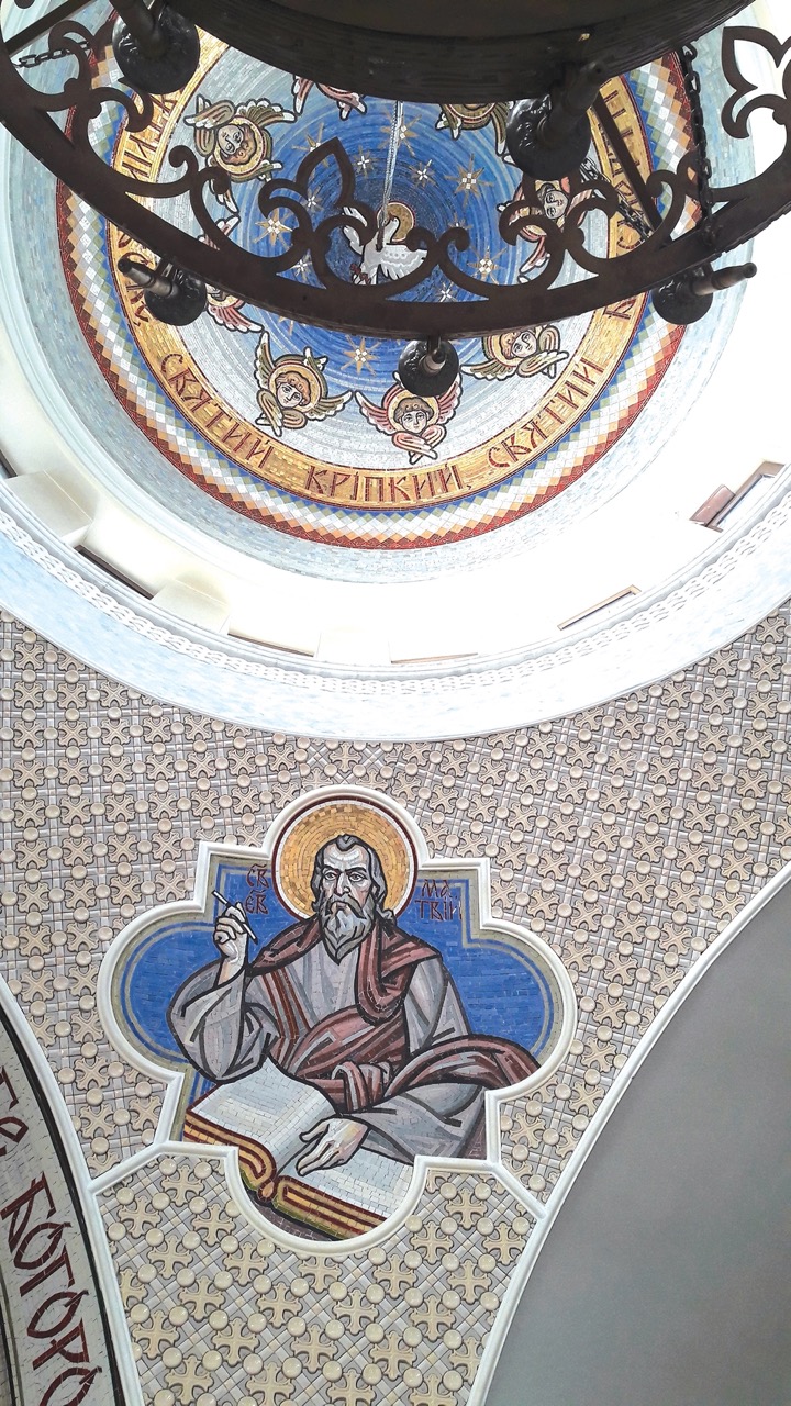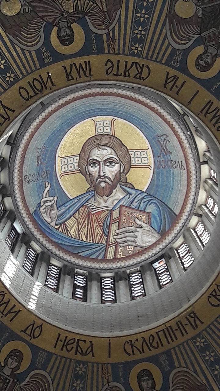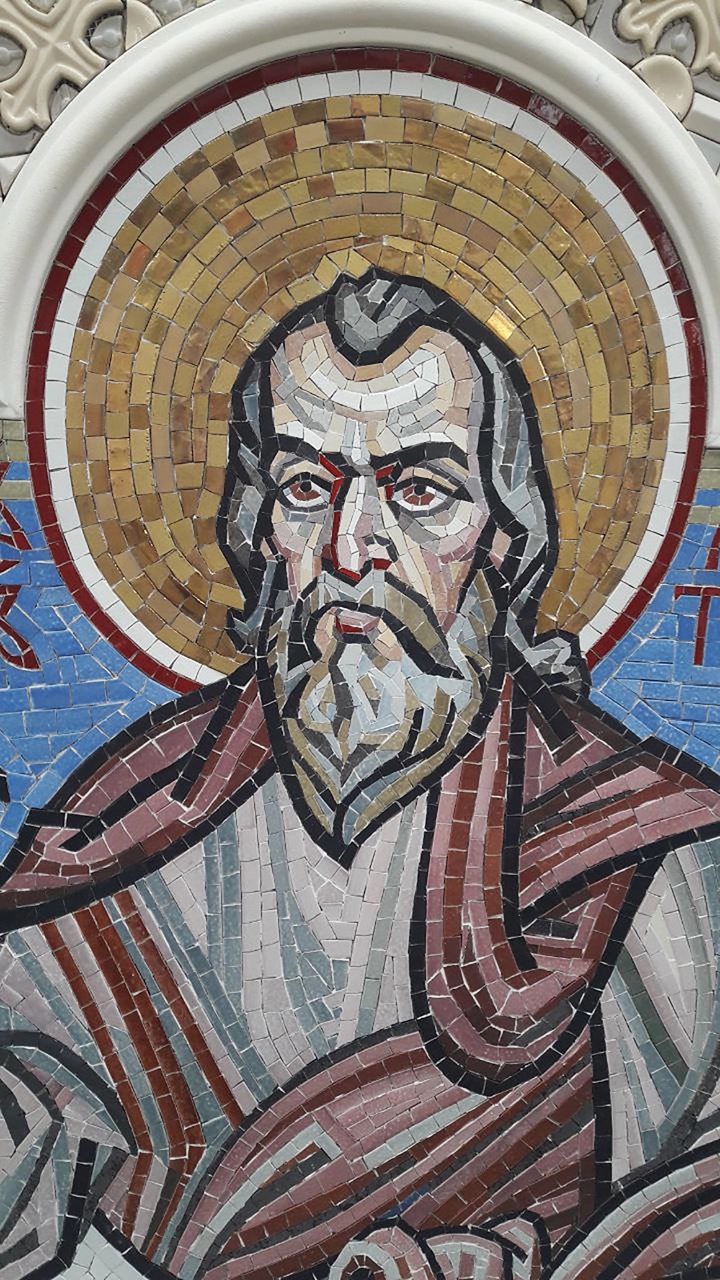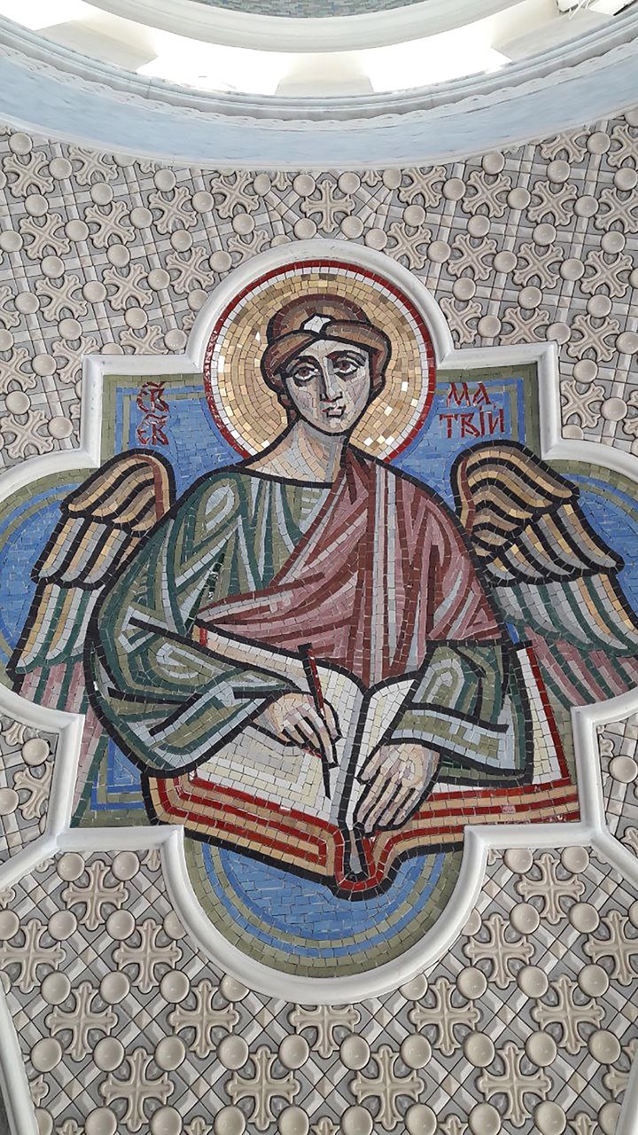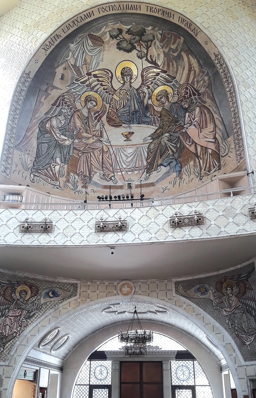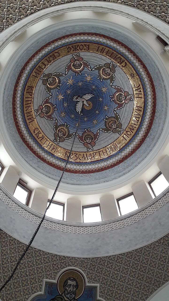 The mosaic was created for the interior of the Holy Transfiguration Cathedral in Kyiv, Ukraine. The mosaic is executed using smalti, natural stone (marble, onyx, and others), and ceramics. The area of the mosaic compositions is approximately 1,000 m². The work was carried out from 2010 to 2018. Executed by: Kateryna and Tetyana Ocheredko. Project author: Levchenko Yuriy Oleksandrovych.