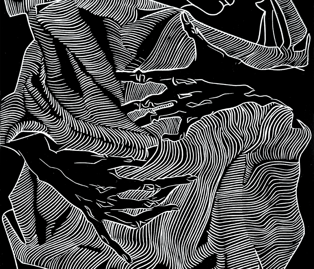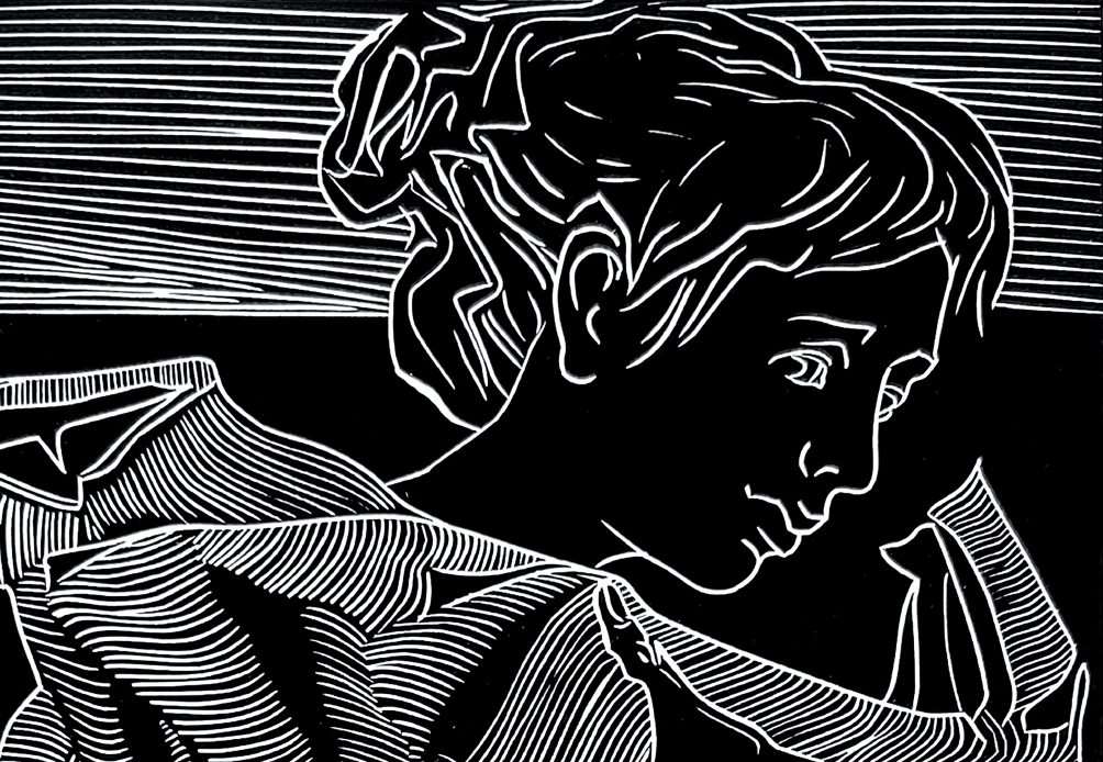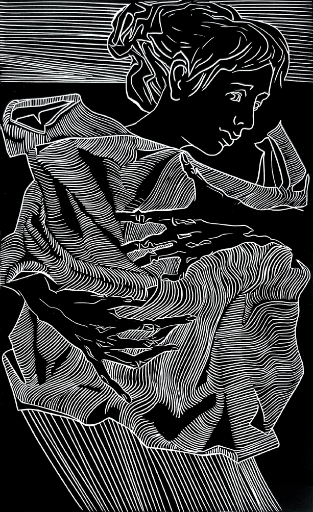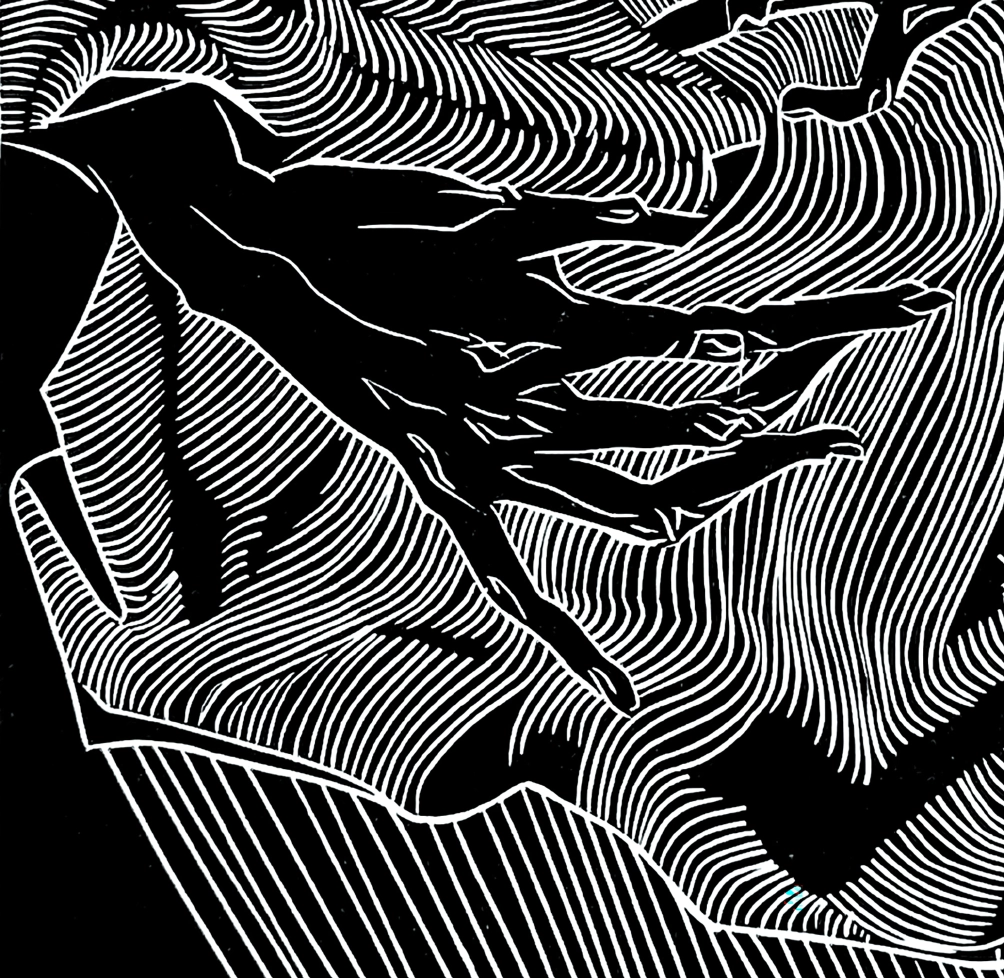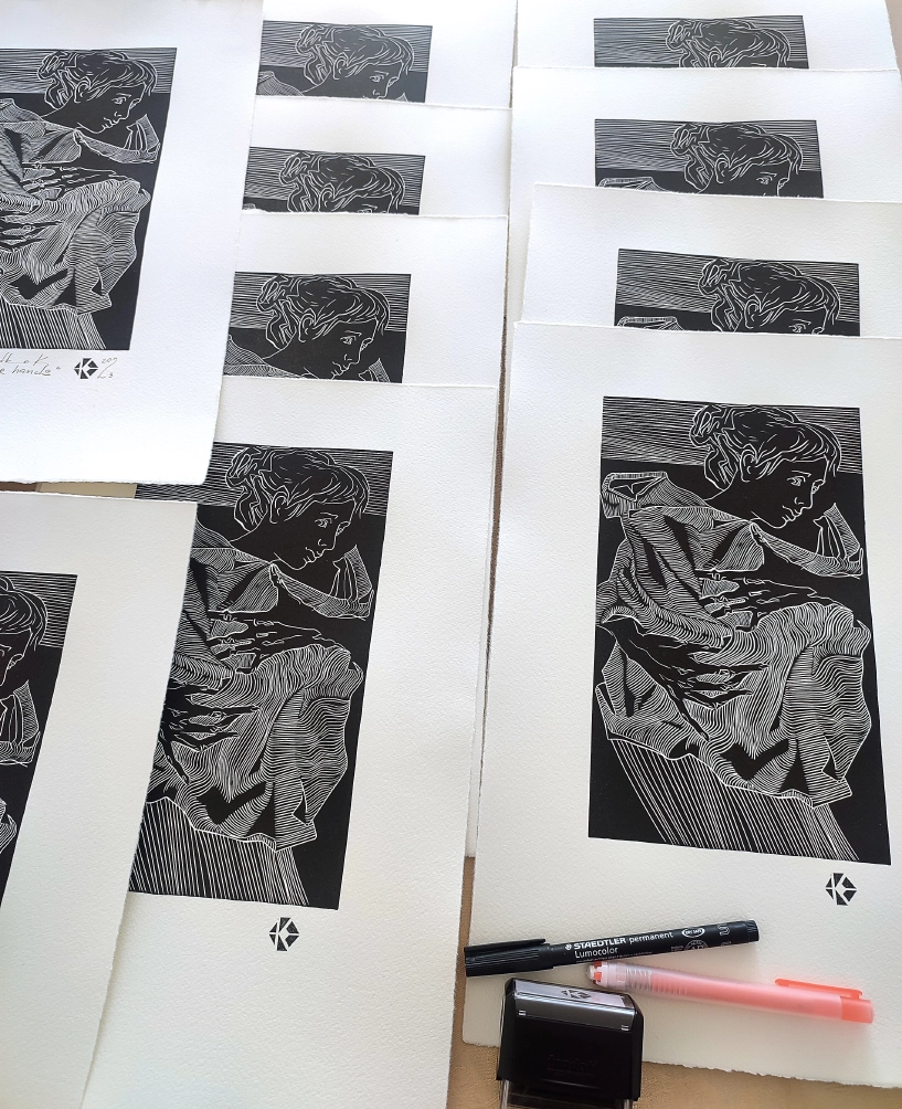 “Життя — у твоїх руках”, 2023, ліногравюра, розмір роботи 25×15 см, розмір паперу 39×27 см, Катерина Очередько