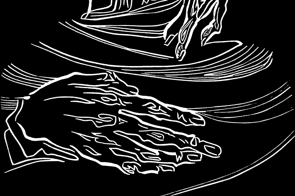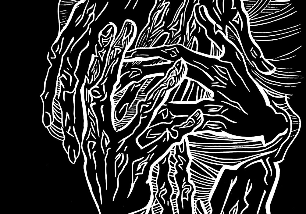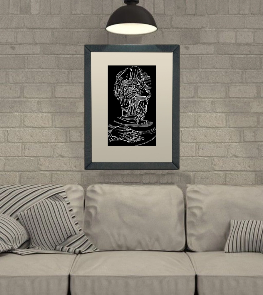 “Наше життя — у твоїх руках”, 2022, ліногравюра, розмір роботи 25×15 см, розмір паперу 39×27 см, Катерина Очередько